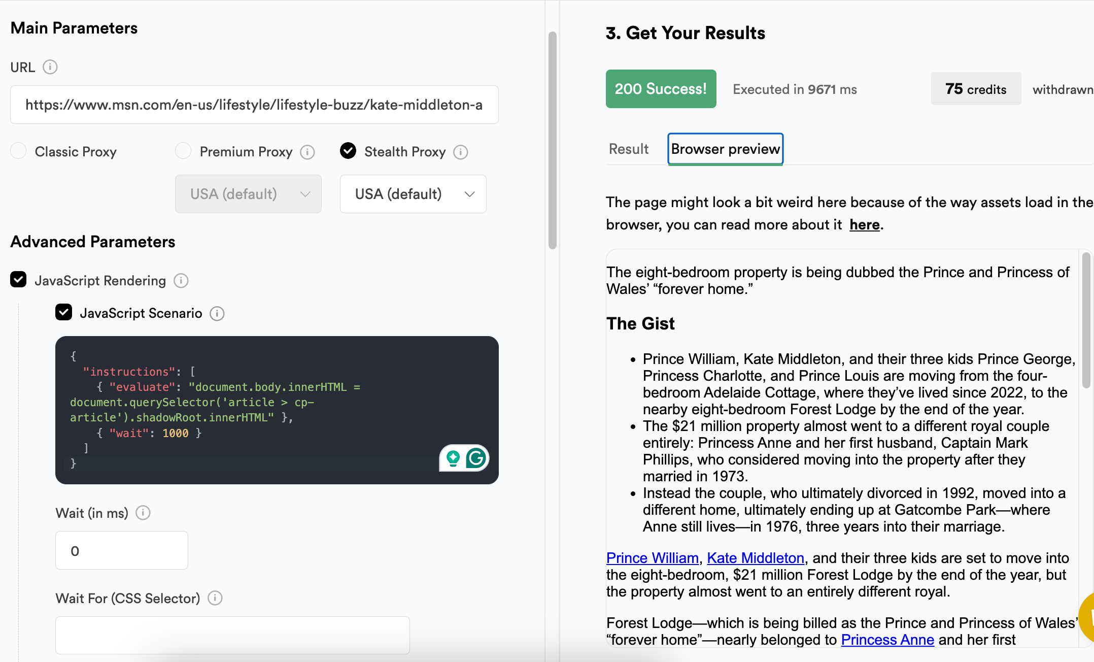The article content is extracted from the shadow DOM and injected into the document body, making it directly accessible through our API. Once exposed, it can be parsed, processed, or utilized as needed.