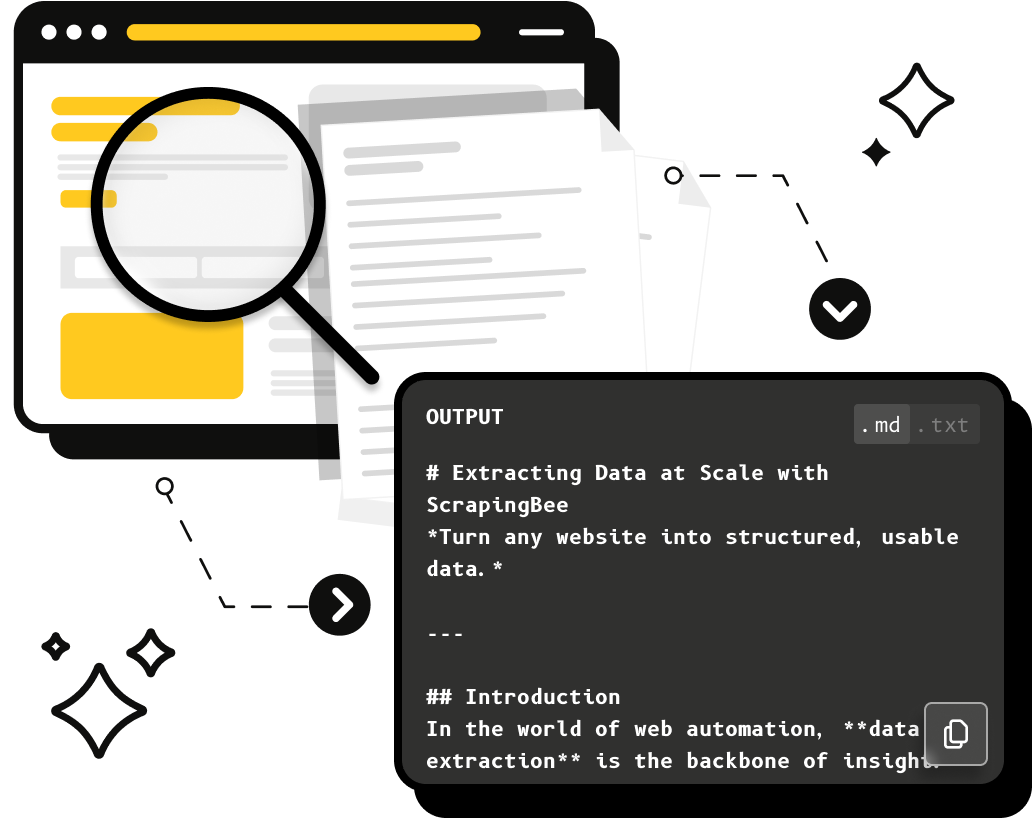 ScrapingBee's return_page_markdown and return_page_text parameters automatically convert web pages into structured, LLM-ready formats—eliminating HTML noise and streamlining your data pipeline for AI training and content processing.